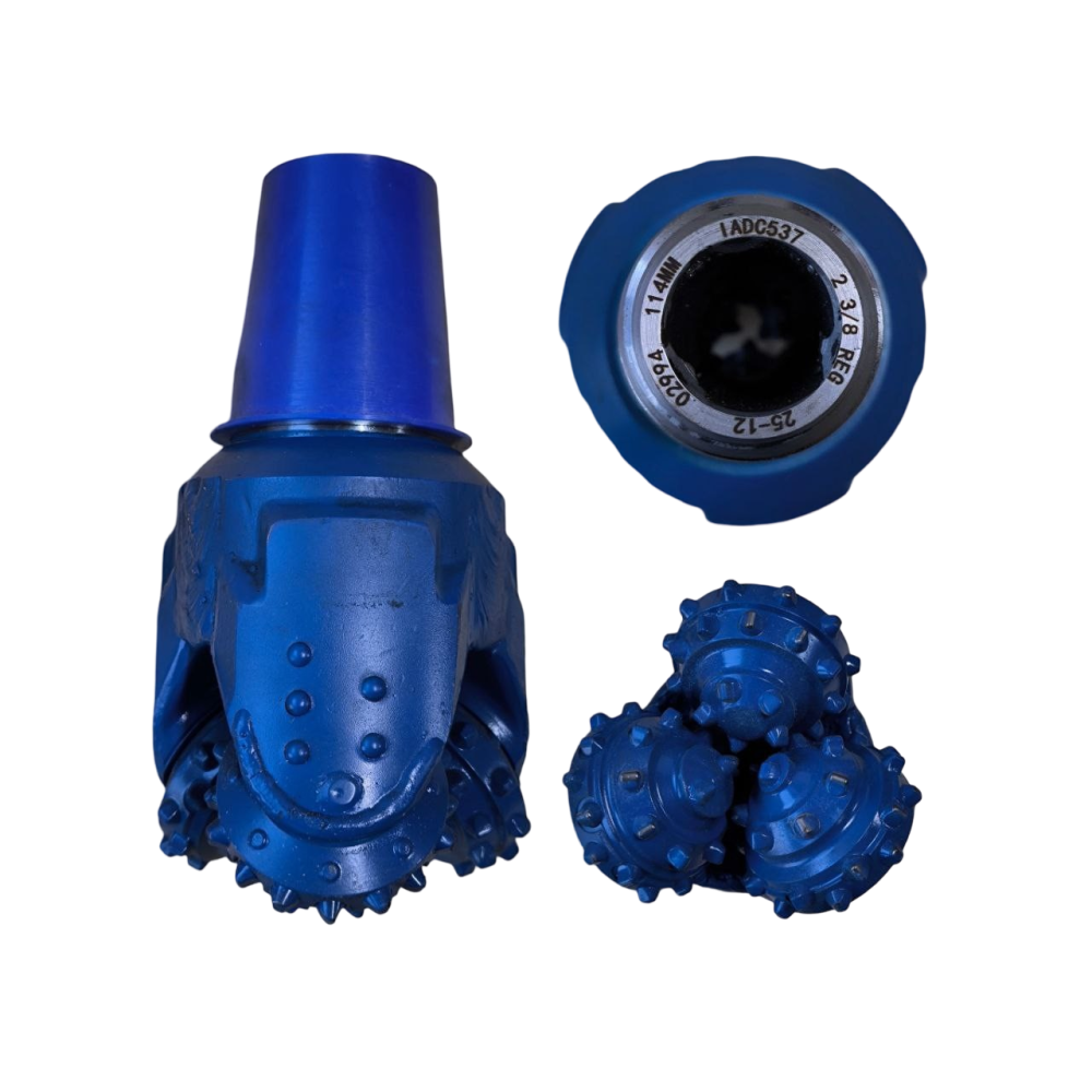 Долото 114.3 (4 1/2) Твердосплавне — це інструмент, призначений для буріння геологорозвідувальних свердловин та свердловин на воду в абразивних породах середньої твердості. Оснащене центральною промивкою та герметичним маслонаповненим підшипником для захисту від передчасного зношування.